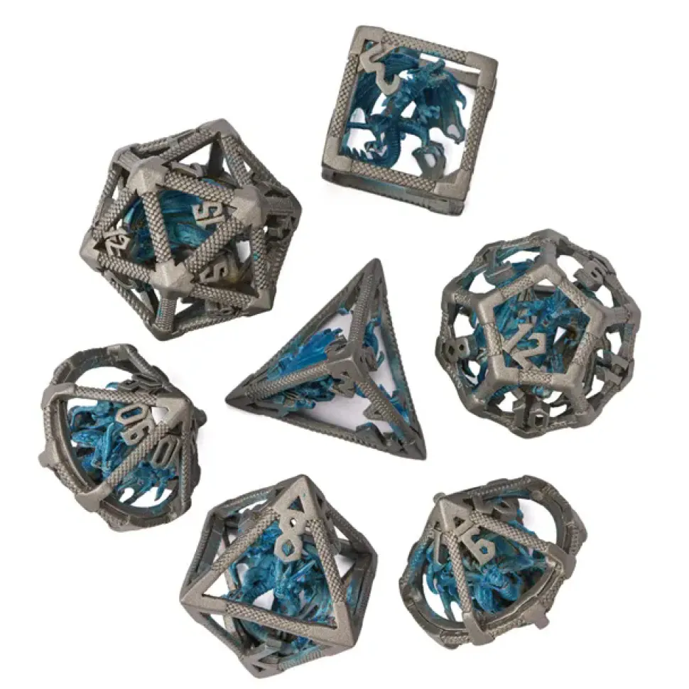 Et sett med syv forskjellige terninger, som passer til rollespill. Inkluderer: D4, D6, D8, D10, D12, D20 og en prosentterning.