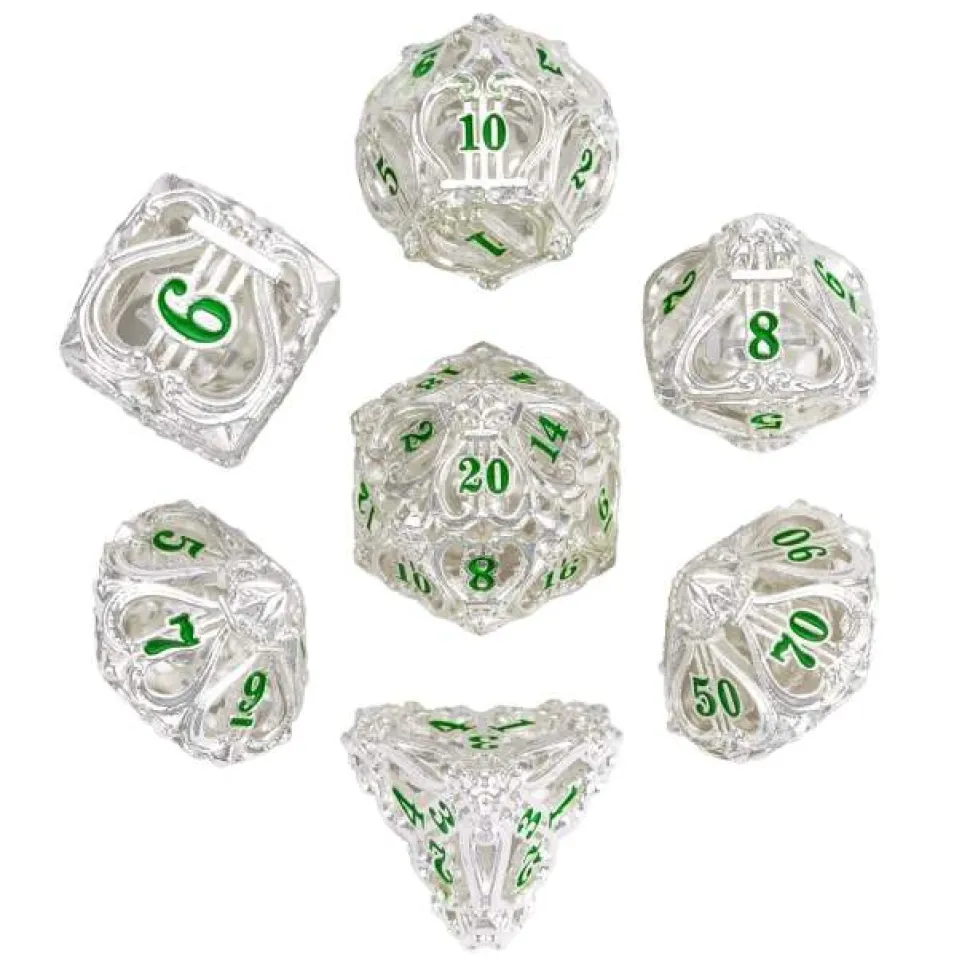 Et sett med syv forskjellige terninger, som passer til rollespill. Inkluderer: D4, D6, D8, D10, D12, D20 og en prosentterning.