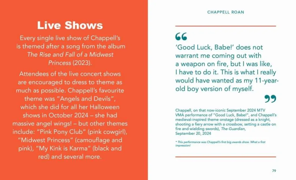 Witty, wise and wickedly refreshing, this tiny tome celebrates all that is fantastic about Chappell Roan, as told by the Midwest Princess herself through 175 of her most iconic interview quotes, plus a sprinkling of glittery trivia too, obvs.