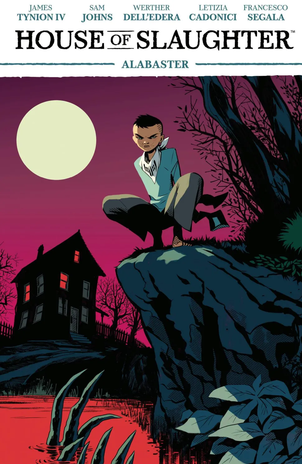 With Bait’s fellow White Masks Paris and Tybalt keeping the pressure on, and Scarlet Mask Gerde’s secret scheming in the shadows, writer Sam Johns (Punchline) and artist Letizia Cadonici (The Neighbors) take House of Slaughter to new emotional depths of terror.