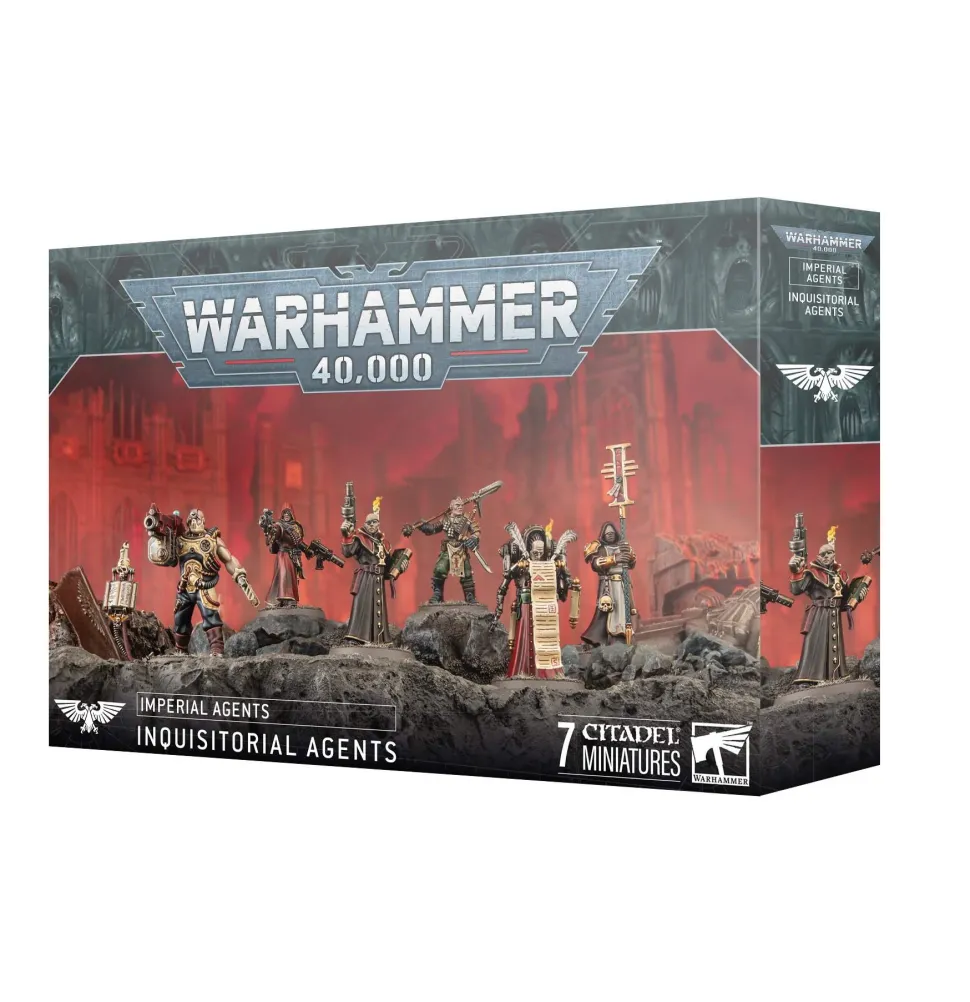This multipart plastic kit builds a team of six Inquisitorial Agents and an accompanying Tome-skull, ready to undertake covert missions on Imperial battlefields.