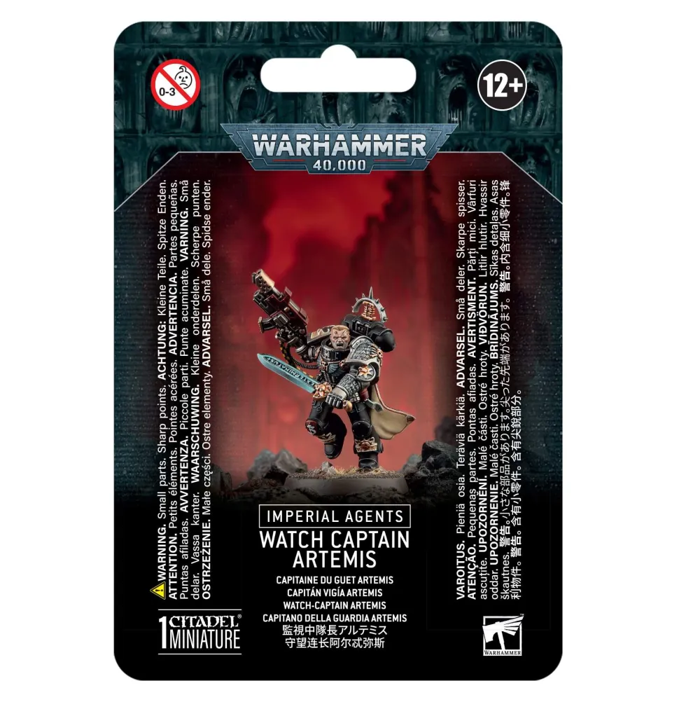 Watch Captain Artemis leads a company of Deathwatch out of Talasa Prime. Renowned for his honed combat instincts, he fights from the fore wielding his thrumming power blade and the artificer combi‑weapon known as Hellfire Extremis, whose gouts of flame and hyper‑acidic bolt rounds are the bane of lightly armoured foes.