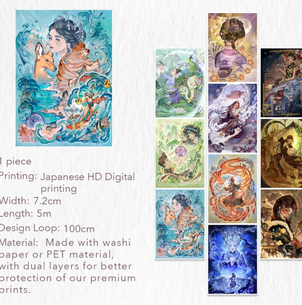 A stunning celebration of Eastern culture and diversity! This gorgeous tape features a PET material option with exquisite gold and silver gilding that adds a touch of elegance and sparkle to your projects.