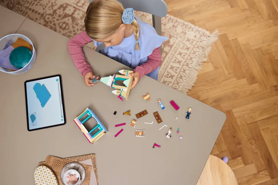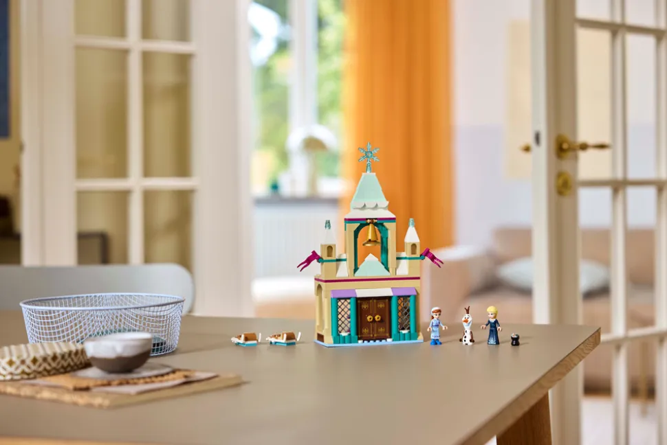 - Byggbar slottsleke – dette barnesettet inneholder et slott med dører som kan åpnes inn til en spisestue, et soverom med to senger, to byggbare sleder, tre figurer fra de populære Disney Frost-filmene og mer