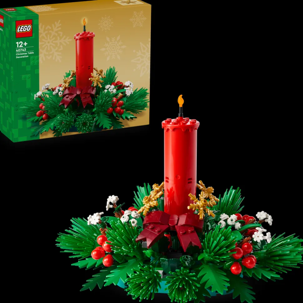 Lag en iøynefallende juledekorasjon med byggesettet LEGO® Juledekorasjon til bordet (40743) for jenter og gutter fra 12 år.