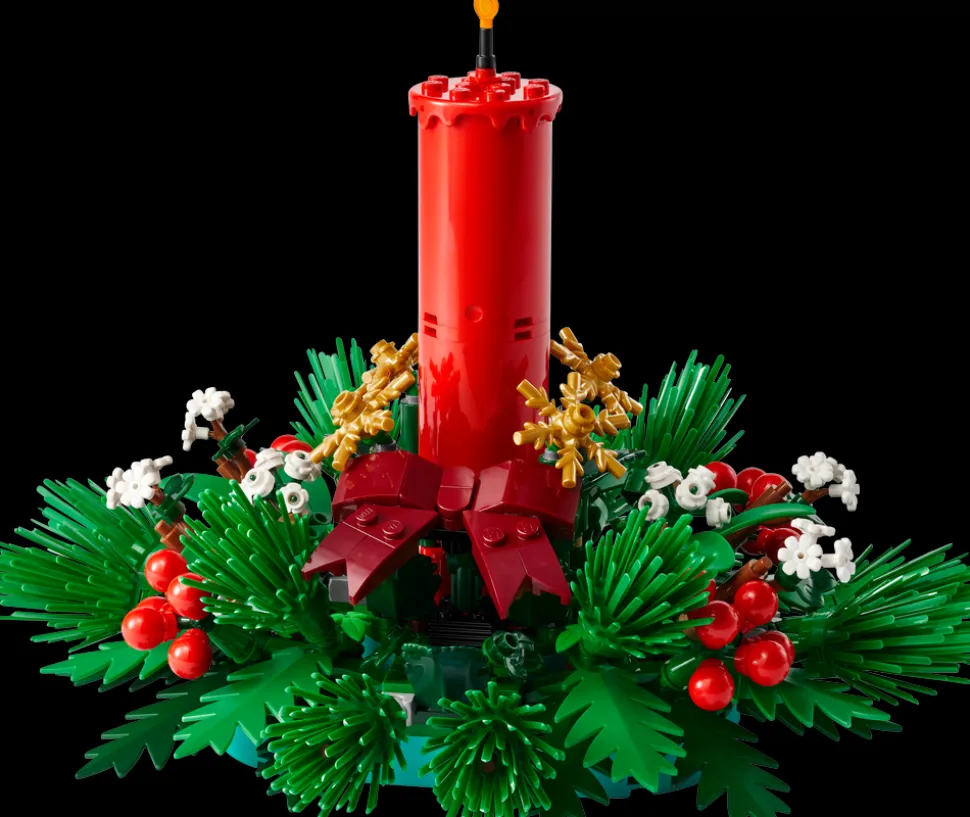 - Juleglede – LEGO® julemodellen har et rødt lys i midten som er omgitt av røde bær, gullstjerner og grønt bladverk