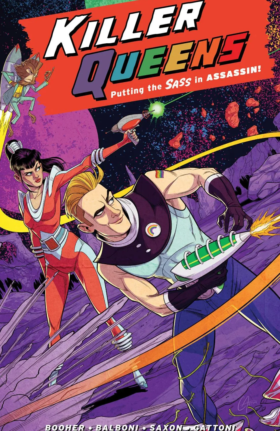 Meet Max & Alex. Reformed intergalactic assassins-for-hire. On the run. Also super gay. Their former boss-a fluffy monkey with a jetpack-is hot on their tail to take back his stolen ship. They gotta eat (tacos preferably), so they take a mission from Alex’s old flame. Your standard no-kill, casualty-free kidnapping recovery from a nearby moon. Only complication? Half the moon is ruled by a fascist dictator hostile to foreigners. They’re the Killer Queens, so what could possibly go wrong?
