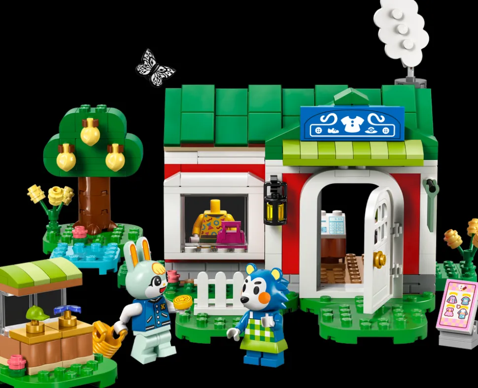 Barn kan forandre hagen utenfor klesbutikken ved å flytte om på basisplatene, og til og med skifte døren og taket ut med andre LEGO Animal Crossing sett (selges separat). Barn får også en enkel og intuitiv byggeopplevelse med LEGO Builder appen, hvor de kan zoome og rotere den kreative leken i 3D og spore framdriften sin.