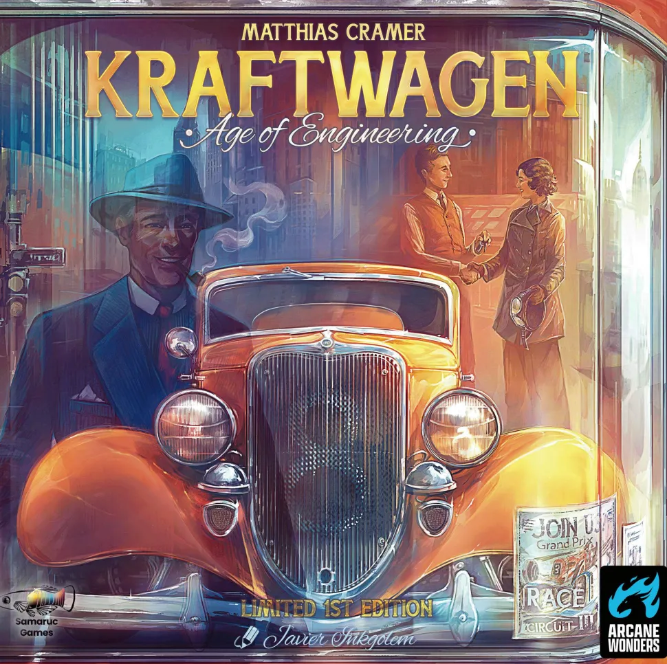 Despite the fact that the North American automobile industry developed later than in Europe, the innovations in the mass production of vehicles and the immense internal market made the American automobile industry the largest and most powerful in the world.In Kraftwagen: Age of Engineering, you will push the development of new engines and bodies with which to launch the best possible range of vehicles on the market, and you will have the opportunity to demonstrate the power of your engines in the first Grand Prix that were held in American territory.Kraftwagen: Age of Engineering reimplements the original design by Matthias Cramer with improvements and simplifications that lessen the luck factor.Let the roar of the engines resound, let the design of the new models attract buyers from all corners of the world, and get the prestige necessary to become the most famous car builder.—description from the publisher