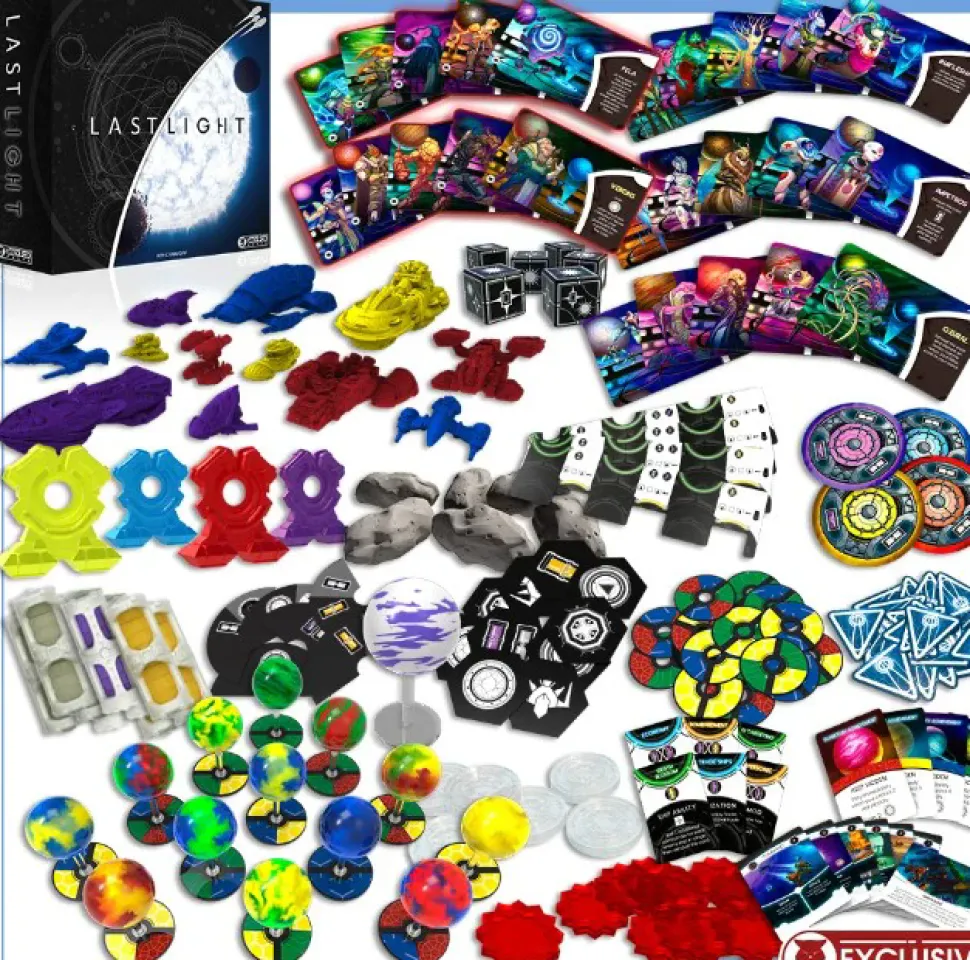 Last Light is a fast-paced 4x game with 3D planets and a rotating board in which players play asymmetrical alien factions simultaneously gathering light right before the heat death of the universe.