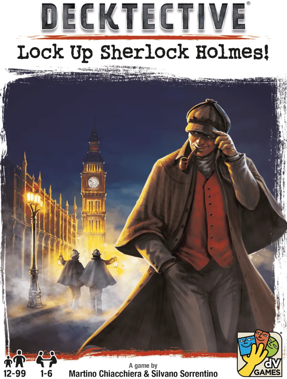 Decktective is a co-operative crime game that can be played alone or in a group.Decktective: Lock Up Sherlock Holmes! is the seventh game of the series.A mysterious inscription stains the floor of 221B Baker Street.Does it have something to do with the theft at the Royal Palace?Is the arrest of the most famous detective of all time really the right solution? First, you must discover what has happened to Sherlock himself!Collect the clues: documents, traces, witness statements……and solve the mystery!—description from the publisher