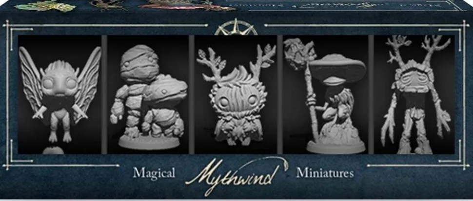 This set includes 5 (+1 Stretch Goal) Magical Miniatures. These minis replace the card board tokens of the Magical Creatures in the game. Wood Golem Swamp Sprite Fairie Keeper Rock Golem Unlocked 6th Magical Miniature—user description.