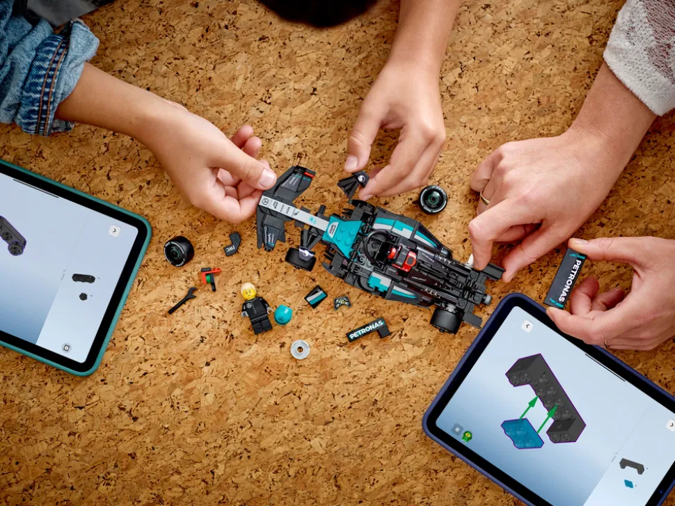 - Størrelse – kjøretøysettet består av 267 deler, og Mercedes-AMG PETRONAS F1®-teamracerbilen er 4 cm høy, 20 cm lang og 8 cm bred