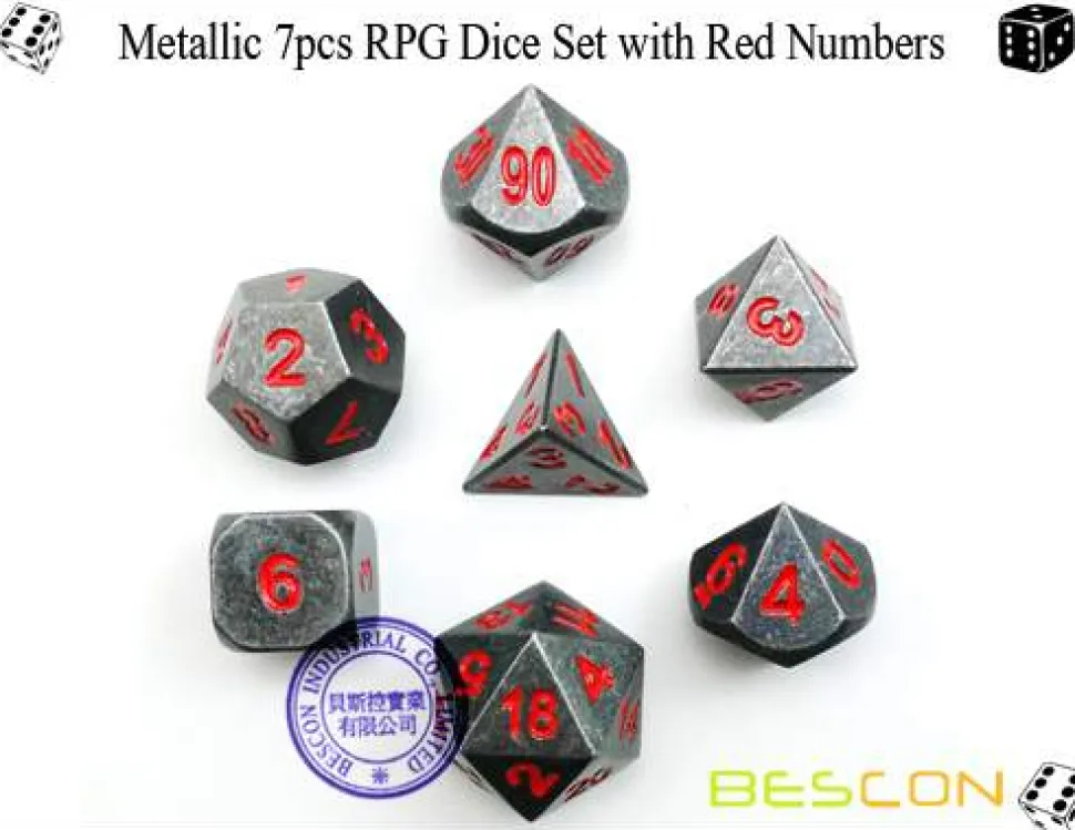 Et sett med syv forskjellige terninger, som passer til rollespill. Inkluderer: D4, D6, D8, D10, D12, D20 og en prosentterning.