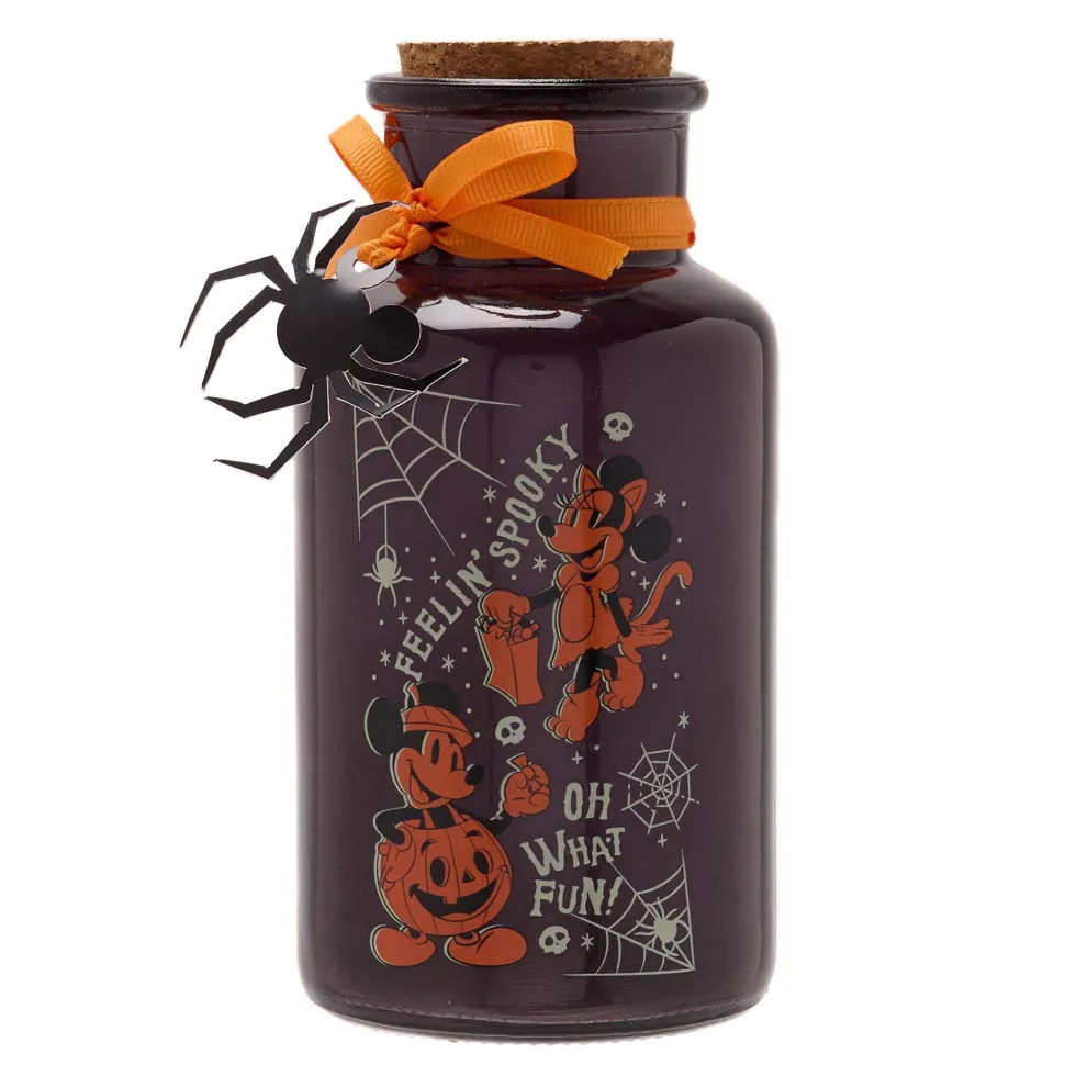 This standout Halloween jar is suitably spooky and shines a light upon Disney favourites. The black glass jar showcases a printed spooky image of Mickey & Minnie Mouse, complete with ‘Feelin’ Spooky, Oh What Fun!’ title, orange ribbon bow around the neck and cork closing lid.