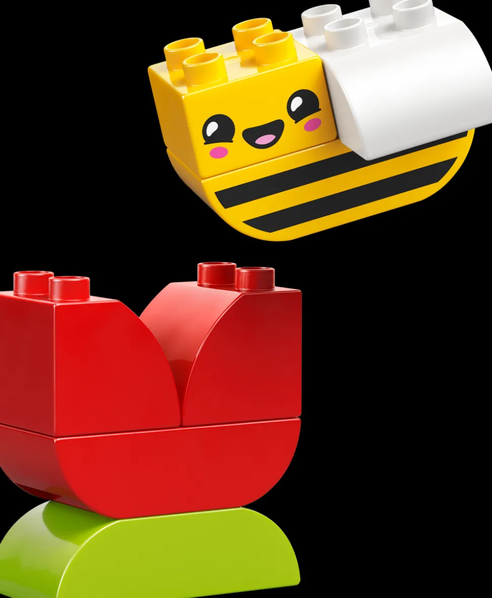 Opplev hvordan naturinteresserte småbarn utvikler ferdighetene sine ved å bygge og bygge om det fargerike settet Mitt første blomst og bie på tre forskjellige måter.