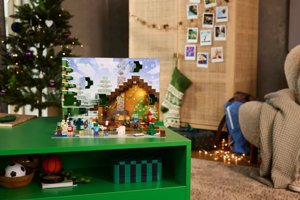 - Julekalender med gaver for unge gamere – LEGO® Minecraft® Julekalender 2025 er en julekalender for Minecraft-gamere, som inneholder 24 overraskelser til jenter og gutter fra sju år