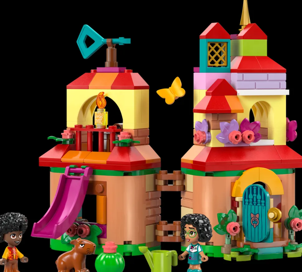 - Fantasy-mikroverden – denne engasjerende byggeleken inkluderer et hus som kan åpnes med en nøkkel, LEGO® ǀ Disney mikrodukkefigurer av Mirabel og Antonio og en LEGO ǀ Disney dyrefigur av et flodsvin