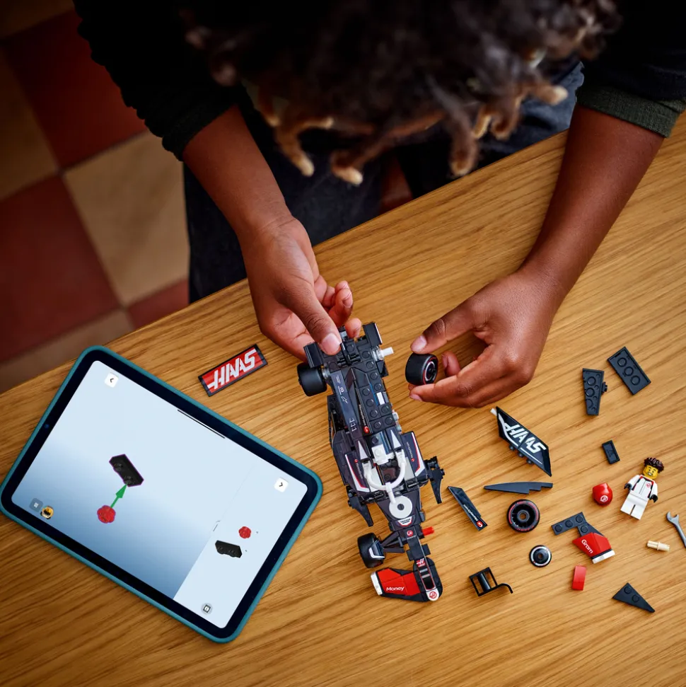- En minifigur – kjøretøysettet inkluderer en sjåførminifigur med MoneyGram Haas F1®-teamdrakt og hjelm med vinge, som barn kan plassere i førersetet for å arrangere actionfylte billøp
