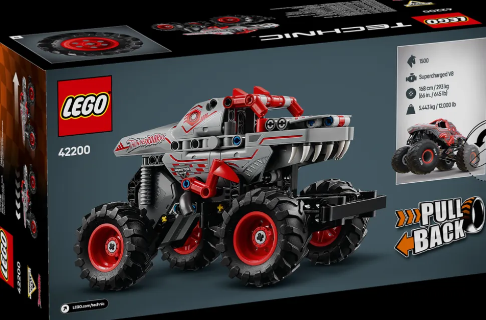 - Pullback-monstertruck for barn fra sju år – LEGO® Technic Monster Jam™ ThunderROARus™ med pullback-funksjon for jenter og gutter som liker monstertruckleker, kjøretøy og dinosaurleker