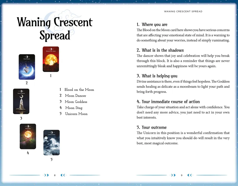 Oracles are not simply a deck of cards – they are an ever-changing storybook of life, in all its possibilities. Dreams of past, present and future shimmer from these cards, as they divulge a myriad of possibilities. Using the divination spreads in the guide book, the Moon Magic deck offers you the chance to catch glimpse of these chapters through the power of lunar magic.