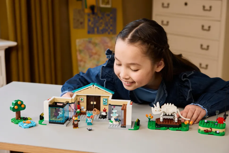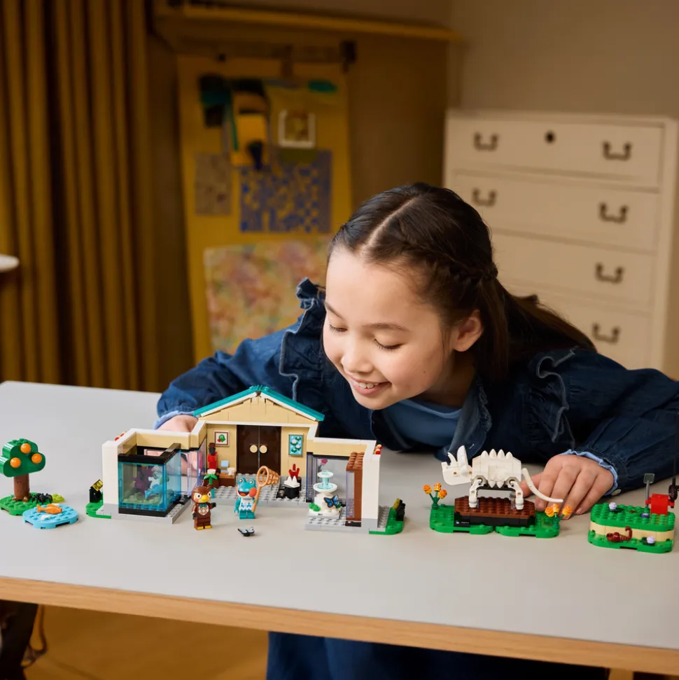 Med denne LEGO® byggeleken kan barn gjenskape museet fra Animal Crossing-dataspillserien og tilpasse de ulike utstillingsområdene med funnene sine. De kan bruke spaden for å grave opp det manglende triceratops-halebenet, fange fisk til akvariet og fange sommerfugler og insekter med et nett. Settet har justerbare, hengslede vegger og elementer som kan flyttes rundt, for å gi barn ekstra lekemuligheter. Settet inkluderer også en fontene og Roost kafé, hvor barn kan slappe av med minifigurene av Blathers og Lily, før de legger ut på neste oppdagelsesferd i naturen. Unge byggere kan i tillegg glede seg over en digital byggeopplevelse med LEGO Builder appen, hvor de kan zoome og rotere modeller i 3D. Settet inneholder 543 deler.