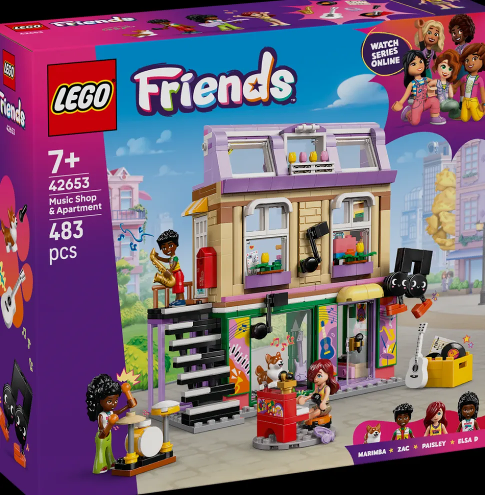 Treff de høye tonene med dette byggbare musikksettet. LEGO® Friends Musikkbutikk og leilighet (42653) er et sett som passer for jenter, gutter og musikkelskere fra sju år og inneholder tre LEGO Friends minidukker, en corgi-figur og fantasistimulerende tilbehør.