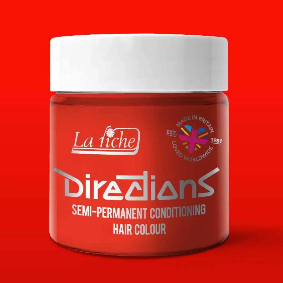 Directions har skrudd opp rødfargen til max for å oppnå en neon rød, oransje-tonet finish som vil få håret til å gløde sterkere enn du kunne fantasert.