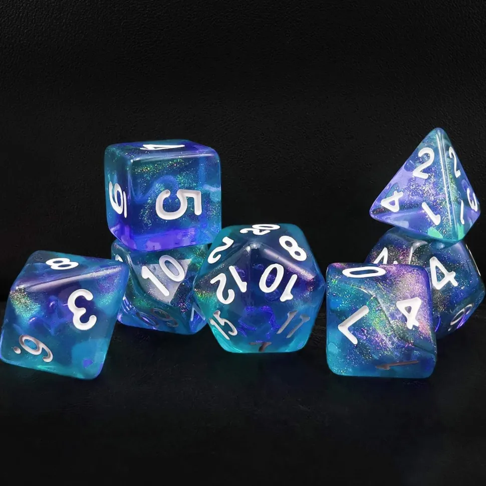 Et sett med syv forskjellige terninger, som passer til rollespill. Inkluderer: D4, D6, D8, D10, D12, D20 og en prosentterning.