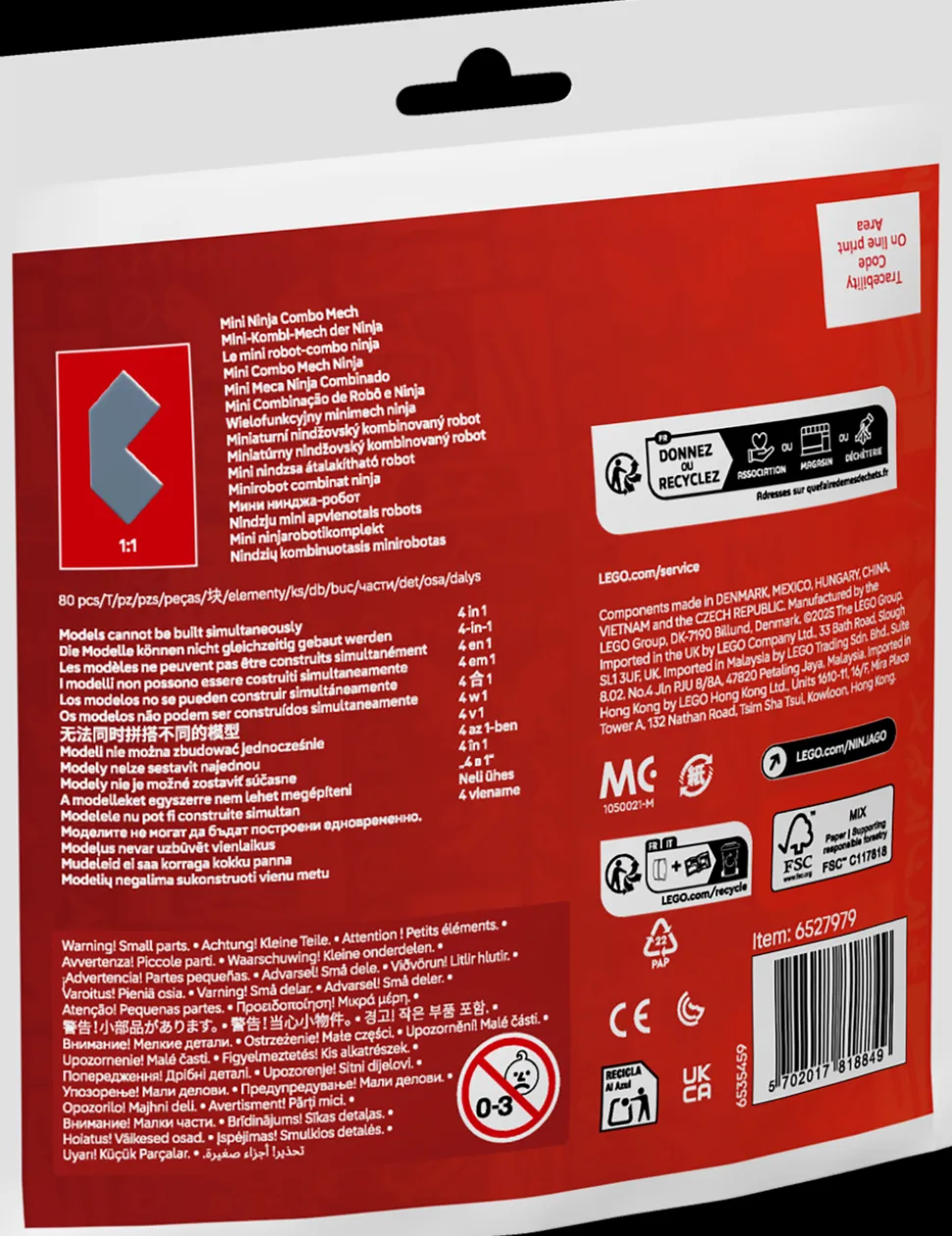 Med denne miniversjonen av Zanes ultra-kombinasjonsrobot (71834) kan barn bygge en bevegelig robotfigur med vinger, som de deretter bygger om til mikroversjoner av Zane, Riyu, et jetfly og en bil.