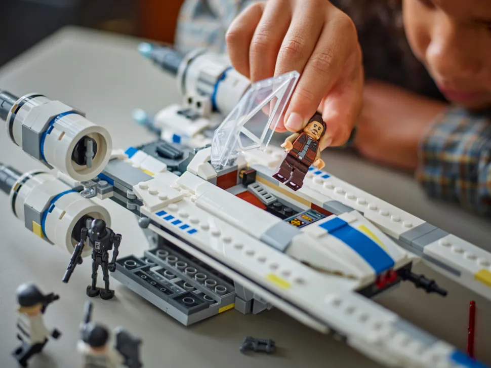 Barn kan bli med Cassian Andor og K-2SO og gjenskape scener fra Star Wars: Andor™ Sesong 2 med byggesettet Opprørernes U-Wing Starfighter (75399). Den klossebygde LEGO® modellen av en U-Wing Starfighter er en gøyal jule- eller bursdagsgave til jenter, gutter og alle Star Wars™ fans fra åtte år. Lekemodellen har en svingbar vingefunksjon som gjør det mulig å endre vingene fra landingsmodus til den ikoniske «V»-flymodusen. Stjernejageren har to fjærbelastede skytere, en cockpit-kuppel som frigjøres ved hjelp av en spak, og et rom som kan åpnes og har plass til passasjerer og last.