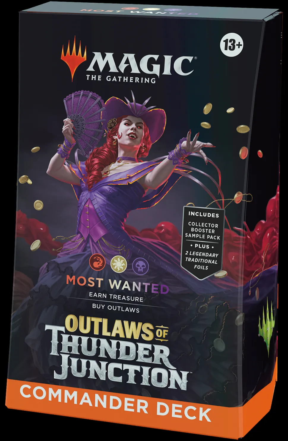 In Commander, four players come together to show their strength and strategy, with one player coming out on top. Each 100-card ready-to-play Outlaws of Thunder Junction Commander Deck makes it easy for Commander fans in your store to grab a deck and play right away.