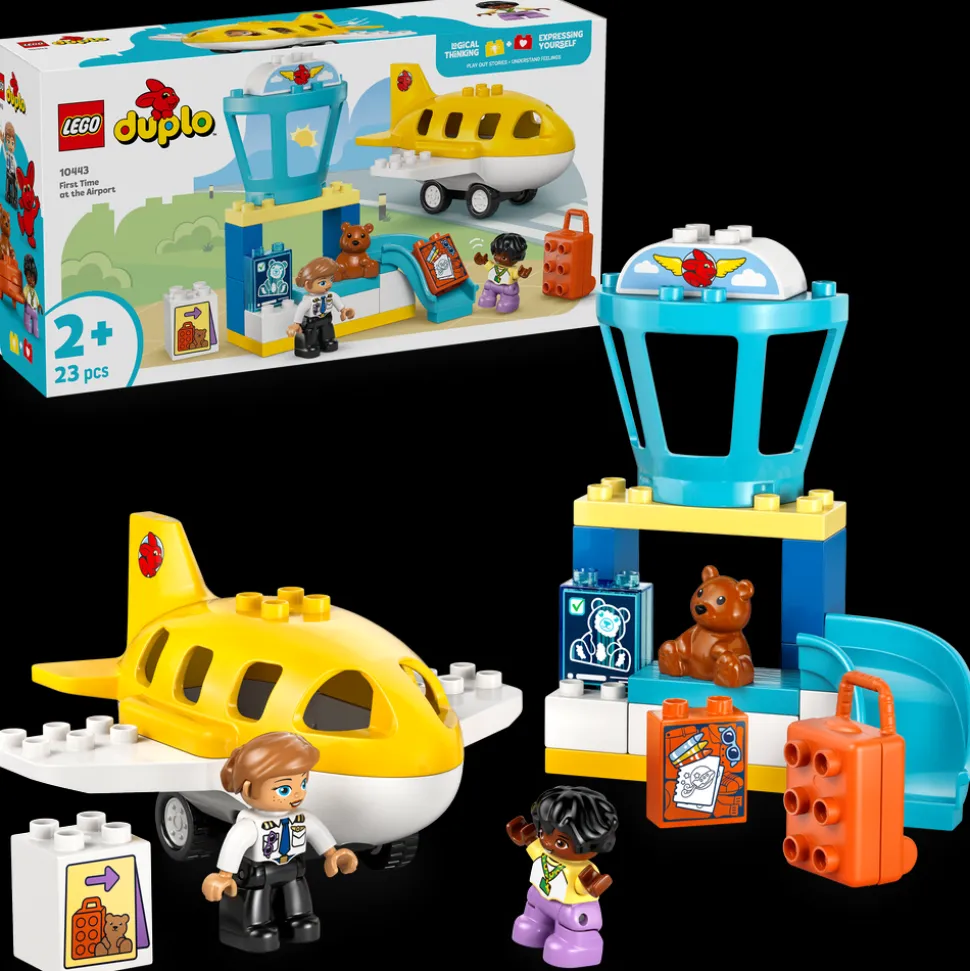 Styrk småbarns selvtillit og evne til å håndtere nye situasjoner med byggeleken På flyplassen for første gang (10443). Gavesettet gir førskolebarn timevis med fantasifull lek, hvor de leker at de pakker til en reise og sjekker inn på flyplassen.