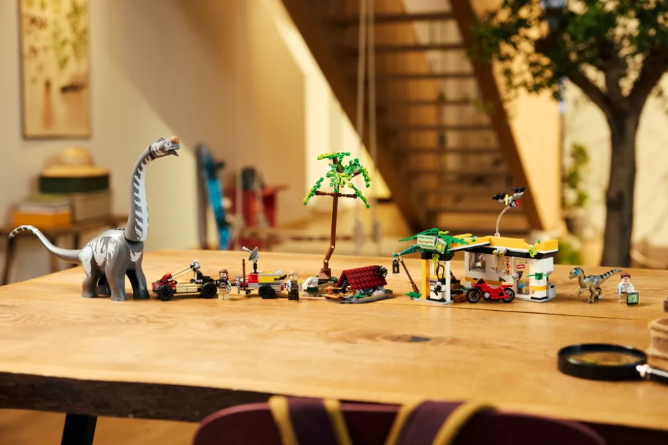 - Dinosaurleker – inkluderer støpte figurer av en LEGO® titanosaurus og en velociraptor samt tre minifigurer fra filmen Jurassic World Rebirth som får fart på barns historiefortelling og rollelek