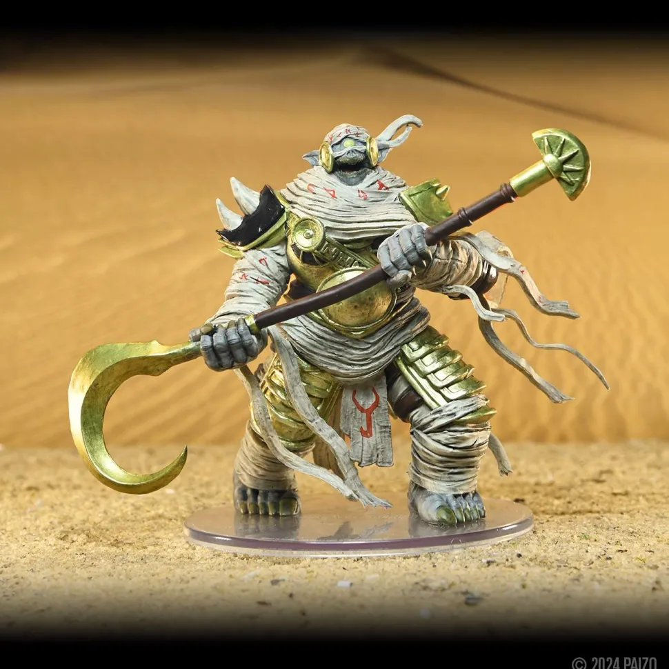This huge boxed miniature features the dreadful Gholdako, a monstrous mummified cyclops who stands opposed to any would-be grave robber or treasure seeker. Though not a challenge to lure away from their charge, gaining the malevolent attention of one of this giant undead will likely spell a character’s gruesome doom.