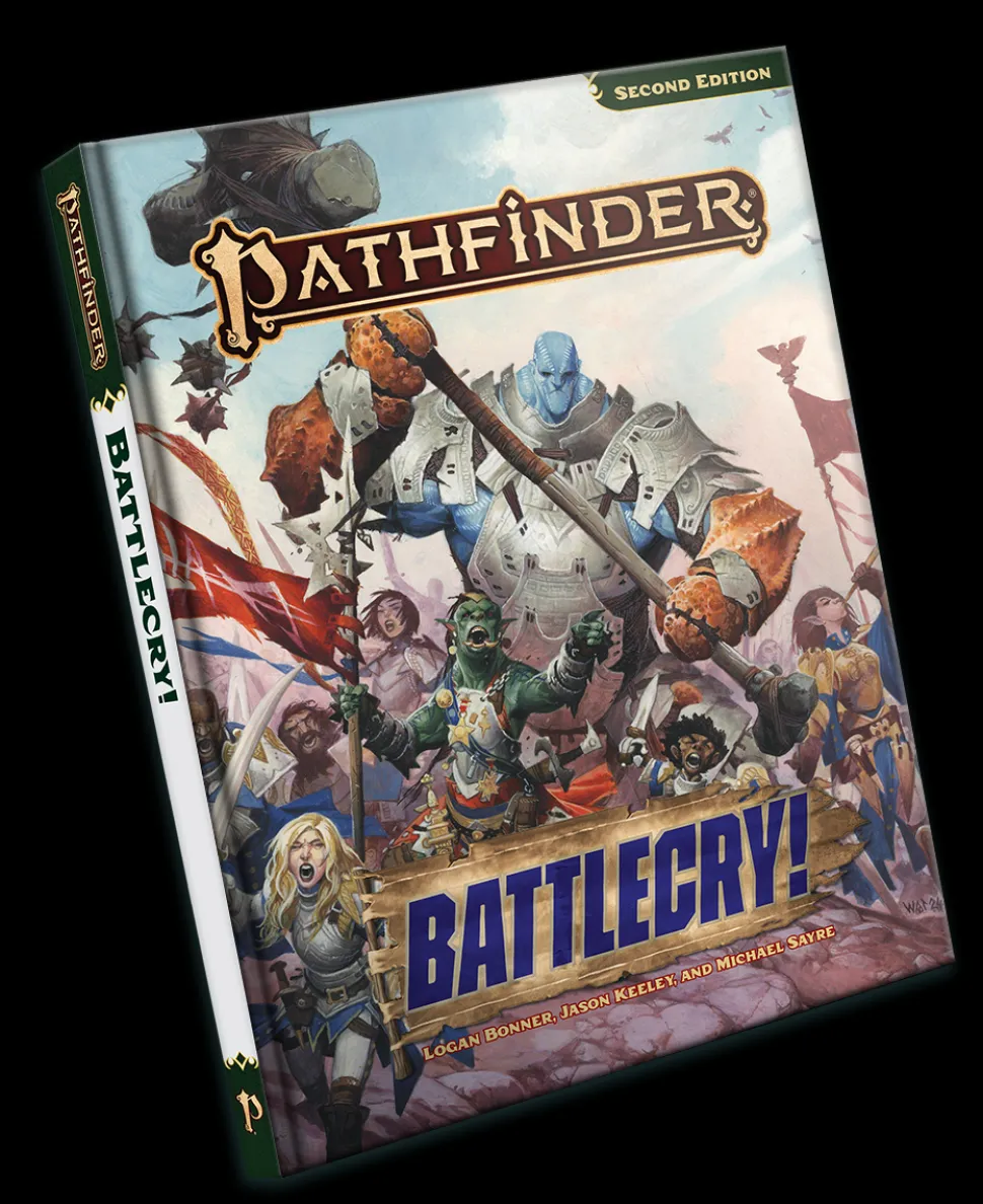 This new rulebook for the Pathfinder Roleplaying Game covers all aspects of war, including two bold new character classes! Help steer the flow of battle as a cunning commander, or protect your allies from harm as an indomitable guardian. You’ll also find archetypes that allow you to raise a small battalion of undead soldiers or wield a personal siege weapon, the new larger-than-life jotunborn ancestry, an armory of magic weapons, and rules for running combat alongside troops that you command to fill out your army’s ranks. Golarion’s generals need you, so heed theBattlecry!