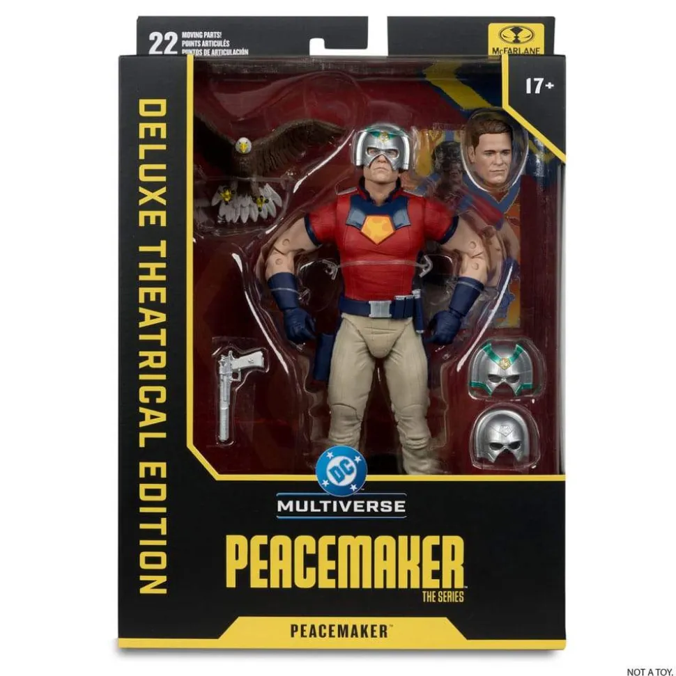 – Accessories include Peacemaker’s «big gun», 3 interchangeable helmets, Eagly, unmasked head portrait and figure display base