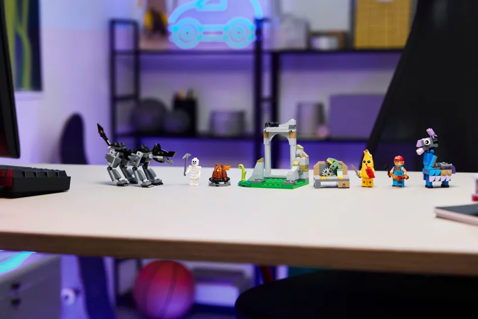 - Dataspillfigurer – barn kan skape ulike scenarioer med minifigurer av Peely, Sparkplug og et skjelett samt figurer av en Supply Llama og en ulv med hale og ben som kan beveges