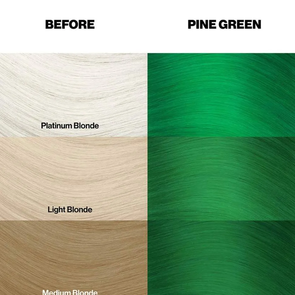 Pine Green er en instens mørk grønn hårfarge med subtile blå undertoner.