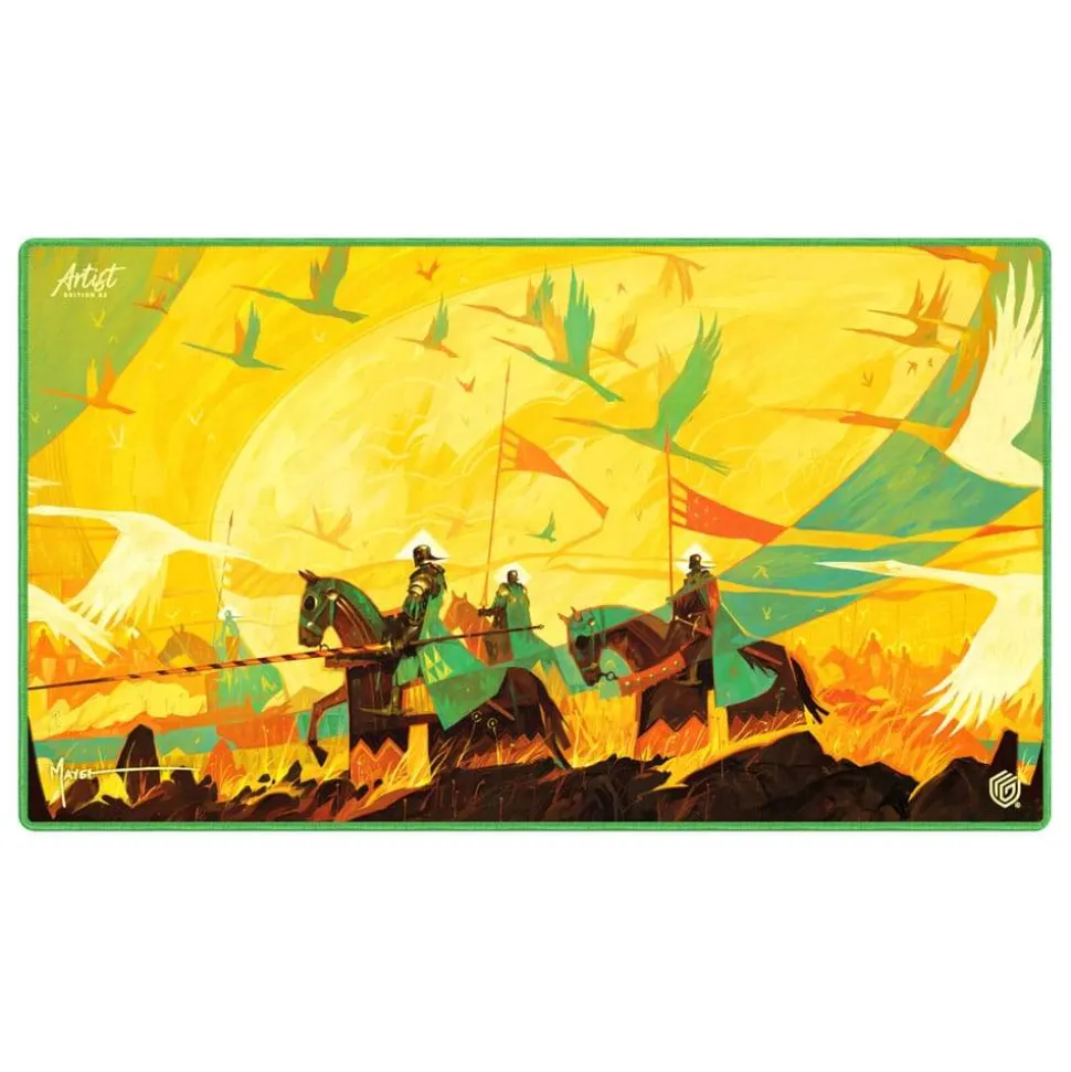 The Play-Mat from Ultimate Guard’s Artist Edition #3, featuring artwork by Magic: The Gathering artist Dominik Mayer, is a high-quality, 61 x 35 cm play-mat that enhances the gaming experience while protecting TCG cards, sleeves, and accessories from scratches, wear, and dirt. The 2 mm thick, soft-cushioned play-mat is made from natural rubber and features our trusted anti-slip underside along with a premium, soft fabric surface. The play-mat’s stitched edges prevent fraying and ensure long-lasting durability.