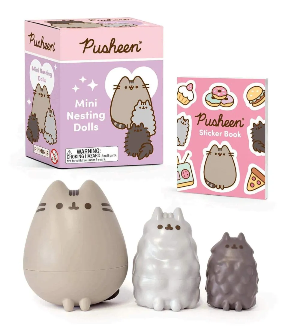 – Specifications: 3 mini nesting dolls featuring Pusheen (2½ inches), Stormy (2 inches), and Pip (1½ inches)