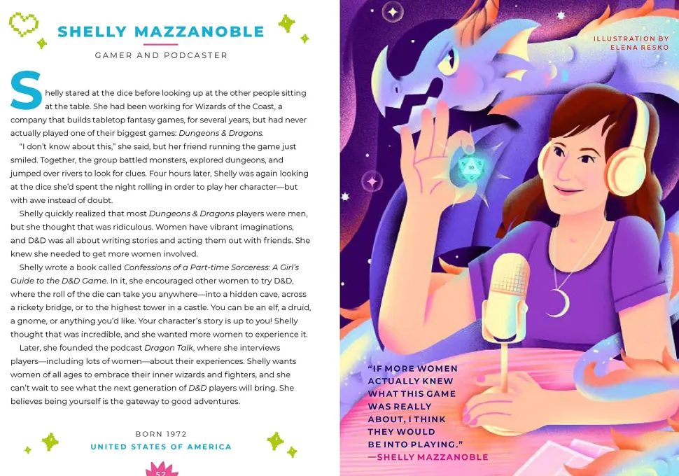 This book pairs inspiring, easy-to-read text with colorful full-page portraits created by female and nonbinary artists from all around the world. Plus, scannable codes let you listen to longer stories on the Rebel Girls app!