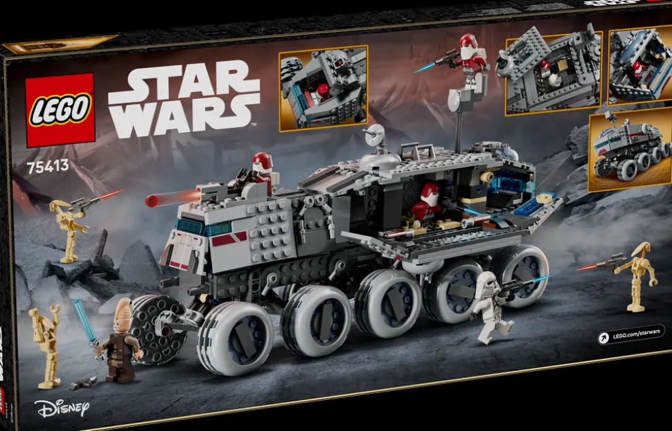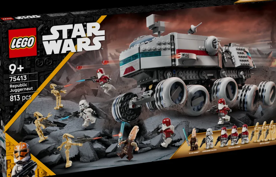 La barn lede an i heroiske kampoppdrag inspirert av Star Wars: The Clone Wars™ med byggeleketøyet Republikkens juggernaut (75413). Settet er en tøff LEGO® Star Wars™ gaveidé til jenter, gutter og fans fra ni år, og den imponerende tihjulingen kan styres ved å vippe modellen mens du beveger den. Det er også enkelt å få tilgang til det detaljerte interiøret.