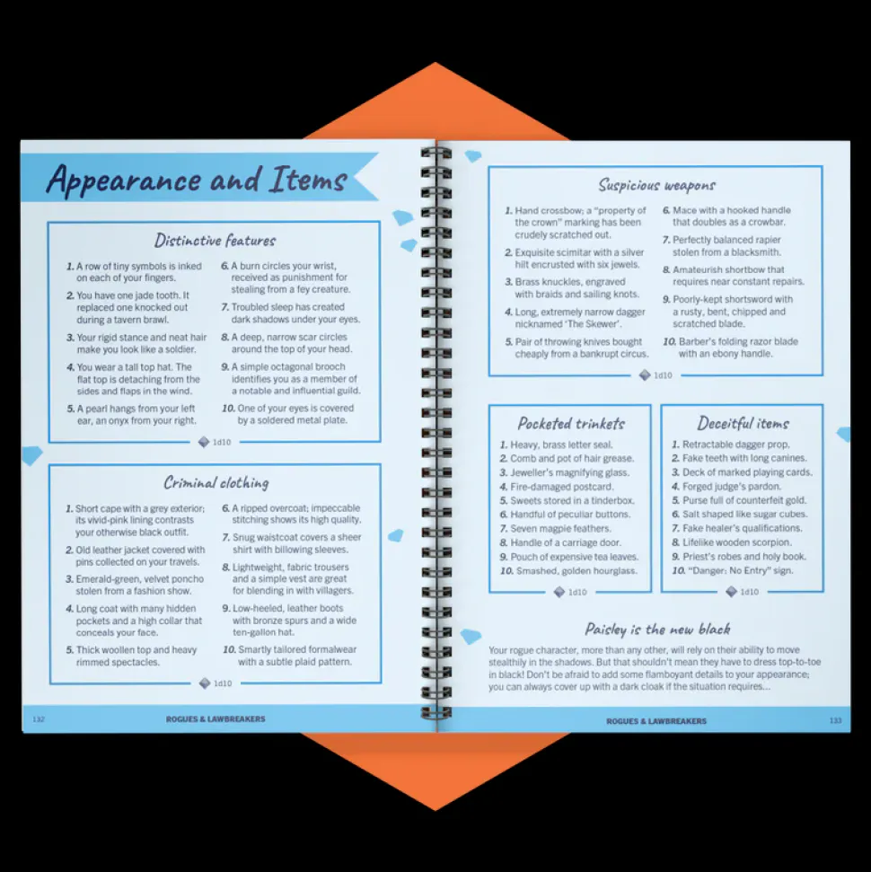 Are you a game master who is looking to create awesome NPCs, hand out tailored loot to your party, or help your players make their most memorable characters yet? Are you a player who wants to add more role-playing moments to your games, dig deeper into your backstories, and add unique twists to your characters? By taking ideas and inspiration from the breadth of random tables withinRoll & Play: The Fantasy Character Kit, your campaigns will soon be full of memorable characters and unforgettable role-playing moments that will bring a totally new dimension to your games!