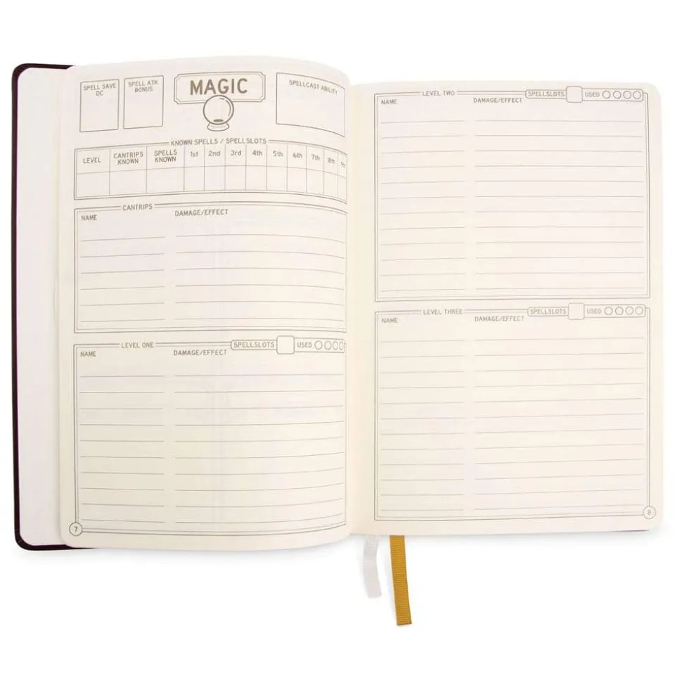 Worried about your dnd character dying? Or do you just play more than one dnd campaign at the same time? No worries, we got you. This notebook features two full character sheets and has two differently colored bookmarks to keep track of both!