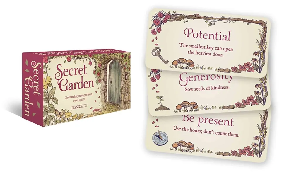 Secret Garden er utgitt av Rockpool Publishing og tilhører sjangeren Kropp, Sjel og Sinn. Dette settet er ideelt for deg som ønsker å finne en dypere forbindelse med deg selv og omgivelsene dine. Hvert kort er en invitasjon til å utforske de skjulte hjørnene av hagen og oppdage de små gledene som ligger gjemt der.