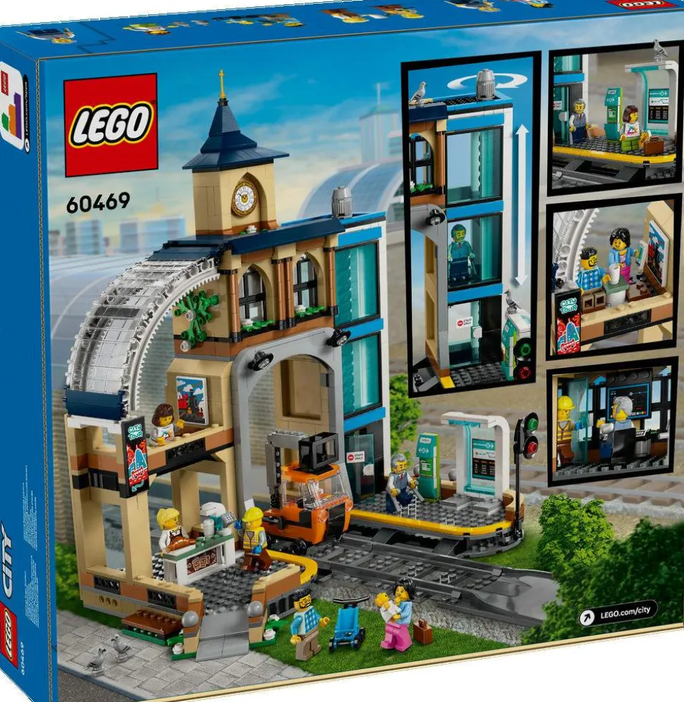 Denne LEGO® City Sentralbanestasjon (60469) byggeleken for barn fra sju år og oppover er fullpakket med kule funksjoner for fantasifull lek på tvers av tre nivåer. Lekestasjonen er toppet med et klassisk klokketårn og inkluderer en koselig kaffebar, fungerende heis, kontrollrom, bussholdeplass, to perronger, en rutetabellskjerm og en billettautomat. Barn får også en vedlikeholdsvogn utstyrt med en heiskurv, pluss 6 minifigurer, en babyfigur og to duefigurer for rollelek og historiefortelling.