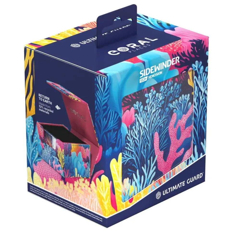 Dive into flourishing underwater worlds with Ultimate Guard’s Coral Places Sidewinders! The sustainable deck boxes are made from 52% recycled materials and, in addition to the durable Xenoskin surface, have a strong magnetic closure and a high-quality microfibre inner lining. With a capacity of 133 double-sleeved cards*, it’s the perfect MTG deck box for your Commander deck with extra space for tokens! The plastic-free packaging is also made entirely from recycled paper and cellulose-based film.