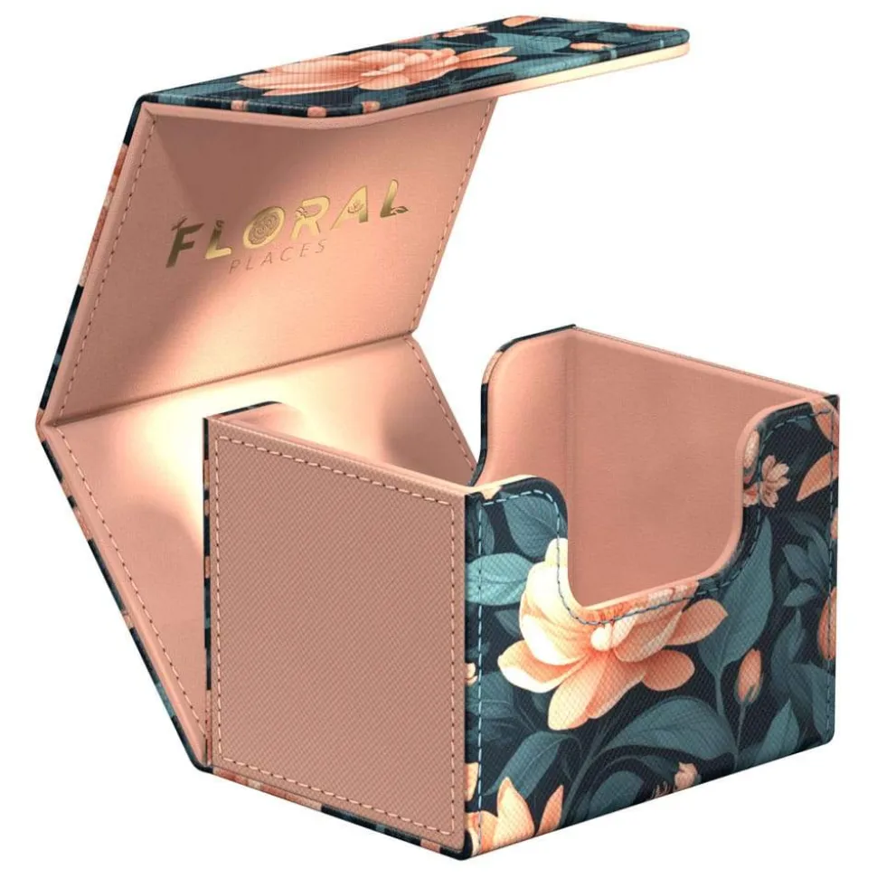 The Sidewinder 100+ Xenoskin is a premium TCG deck box, offering exceptional card protection with its durable Xenoskin material, microfiber inner lining, and strong magnetic closure — all while providing easy and convenient access to the cards inside. Designed to hold 100 double-sleeved trading cards in Ultimate Guard sleeves, our «Floral Places» Sidewinder is the perfect deck box for TCGs like Magic: The Gathering, Pokémon, Lorcana, One Piece, Yu-Gi-Oh!, Flesh and Blood and other TCGs.