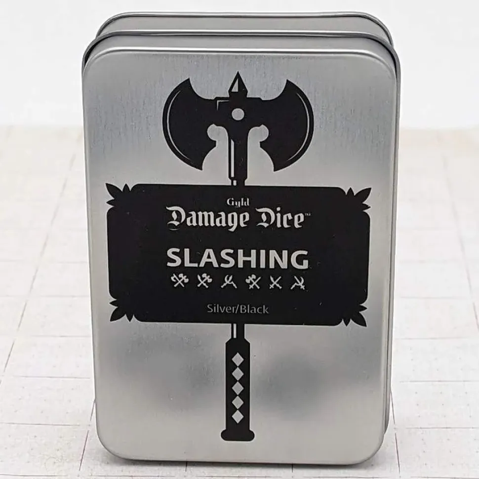 Polyhedral dice specifically designed, produced, and packaged for rolling Slashingdamage in Dungeons and Dragons Fifth Edition. The baseset of 7 dice can be used as your main set, or as a stylish supplement. The weight of this metal set delivers a satisfying roll for martial classes which don’t get thedice-waterfalldamage rolls of magic users.